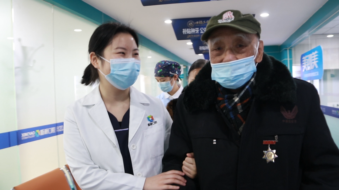 近日,新橋口腔醫(yī)院來了一位步履蹣跚的老人。客服人員一眼認(rèn)出了這位老壽星,連忙上前攙扶。老人須發(fā)全白,身穿一件印有“中國遠(yuǎn)征軍”字樣的外套,胸前佩戴的一枚勛章顯示了他的特殊身份——抗戰(zhàn)老兵。