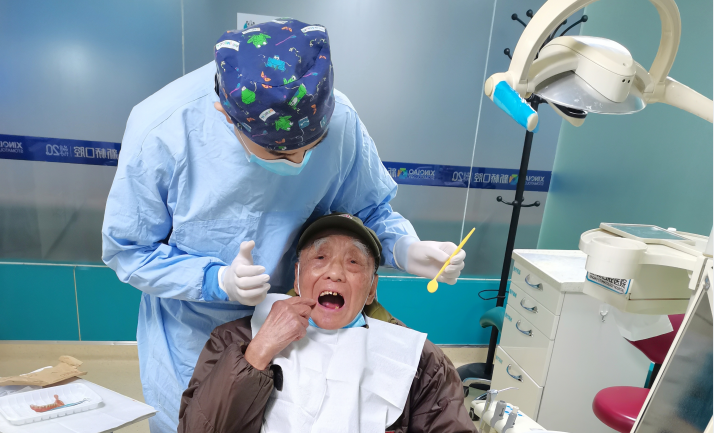 2021年,孫憲強(qiáng)醫(yī)生接棒陳蕊然教授為何鏡明老人完成義齒治療
