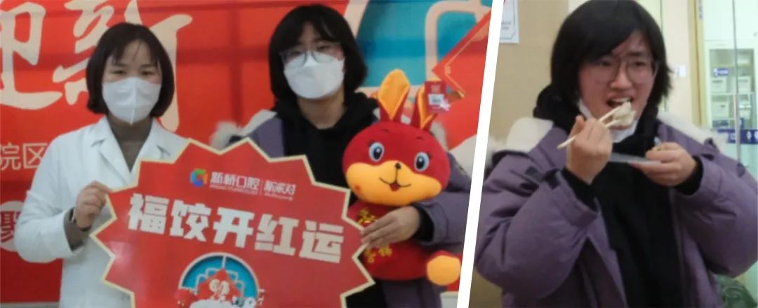 參加活動(dòng)的來(lái)賓和正在等候就診的顧客,都可以領(lǐng)取一份餃子“盲盒”。很快,在周圍人的歡呼聲中,一位吃到幸運(yùn)福餃的顧客眉開(kāi)眼笑的舉手示意:“完全沒(méi)想到會(huì)這么幸運(yùn)。我本來(lái)今天是過(guò)來(lái)做治療的,非常開(kāi)心能遇上新橋口腔的這個(gè)活動(dòng)。也祝在場(chǎng)所有的朋友們,新的一年好運(yùn)滿滿!”