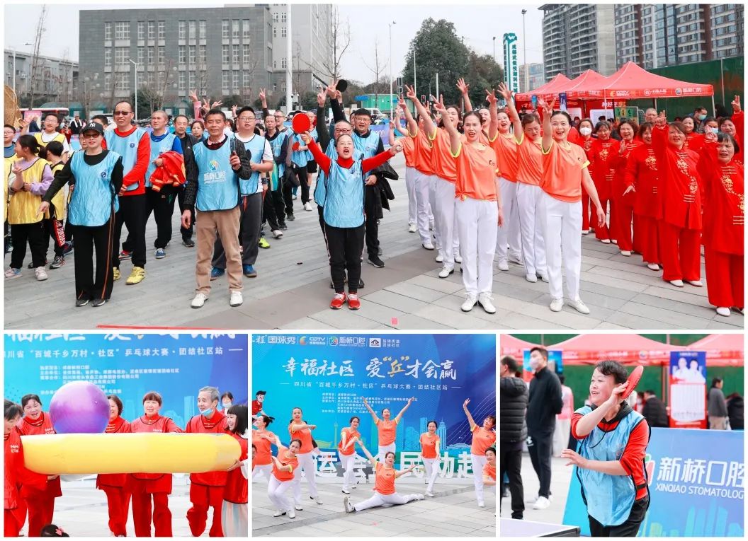 助力四川省“百城千鄉(xiāng)萬村·社區(qū)”乒乓球大賽,昨日(2023年2月26日)下午,口福工程國球秀第十一站走進成都團結社區(qū)!新橋口腔攜手成都電視臺,與數(shù)百位團結社區(qū)居民一起,以國球PK為主題,共享運動快樂!