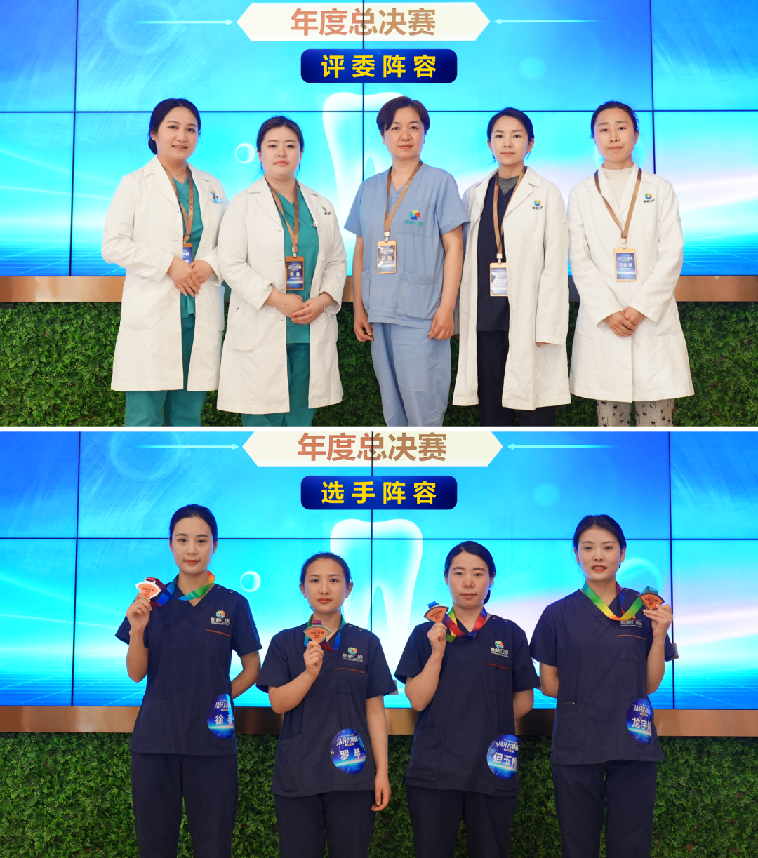因年底疫情延期至今年三月的新橋口腔“潔牙大師杯”總決賽近日在新橋口腔衣冠廟院區(qū)成功舉辦。最終,歷經(jīng)2022年四場(chǎng)PK賽初賽誕生的四強(qiáng)選手終于成功會(huì)師總決賽!她們分別是來自成都衣冠廟院區(qū)徐著、成都高新院區(qū)龍宇婷、成都玉雙院區(qū)但玉梅、成都武侯院區(qū)羅琴。新橋口腔種植??浦魅务R燕及成都衣冠廟院區(qū)口腔保健科主管屈曼、成都高新院區(qū)資深潔牙師李歡、成都玉雙院區(qū)口腔保健科主管朱甜甜、成都武侯院區(qū)口腔保健科主管廖晨露擔(dān)任本次大賽評(píng)委。