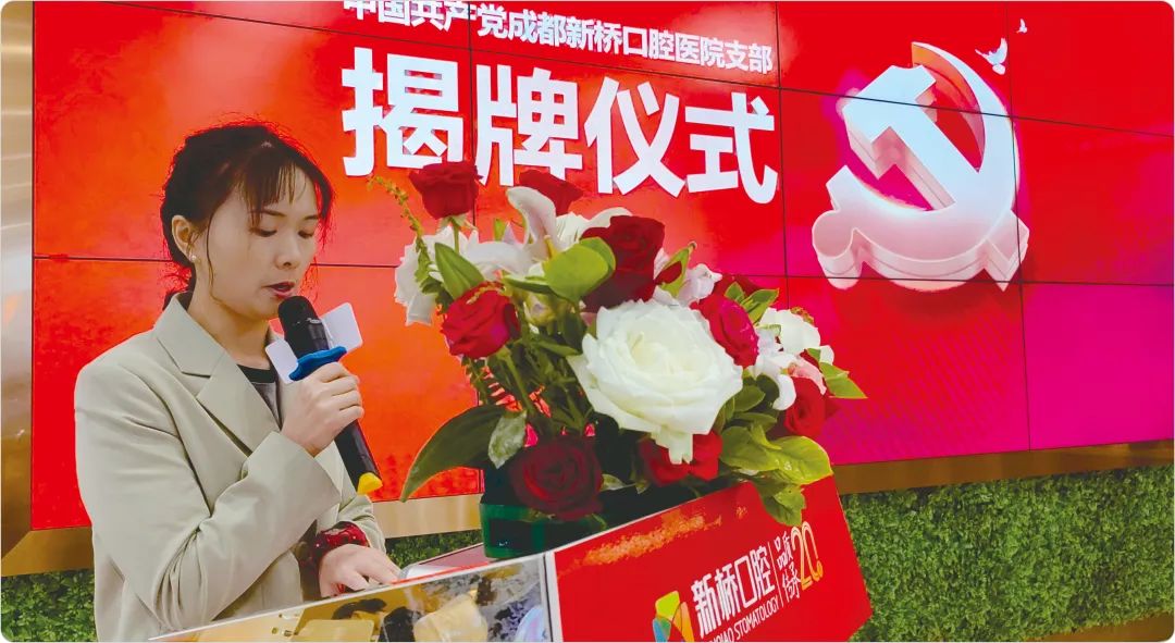 為進(jìn)一步加強(qiáng)新橋口腔黨組織建設(shè),用高質(zhì)量黨建引領(lǐng)企業(yè)高質(zhì)量發(fā)展,在成都市武侯區(qū)漿洗街道蜀漢街社區(qū)和各級(jí)黨委的關(guān)懷、指導(dǎo)下,新橋口腔于今日上午正式舉行黨支部成立揭牌儀式。成都市武侯區(qū)漿洗街道蜀漢街社區(qū)黨委副書記高桂華、華西種植專家/新橋口腔成都玉雙院區(qū)業(yè)務(wù)院長劉果生、新橋口腔第一屆黨支部書記蔣越等相關(guān)負(fù)責(zé)人出席本次儀式。