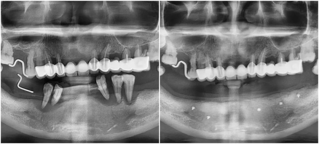 史阿姨下頜拔牙植骨前與拔牙植骨后全景片對比