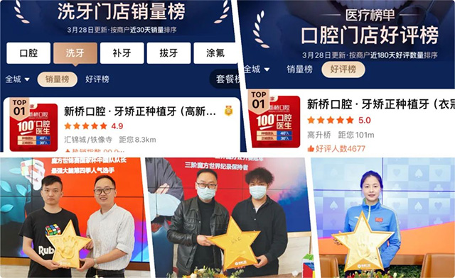 新橋口腔潔治項(xiàng)目2023年潔治量超50000人次,不僅位列本地口腔潔治銷(xiāo)量榜第一,好評(píng)數(shù)量也位列好評(píng)榜第一!其秘密武器——“十項(xiàng)潔治金標(biāo)準(zhǔn)”不僅是新橋口腔潔治項(xiàng)目的操作技術(shù)規(guī)范,也是新橋口腔潔治品質(zhì)的有效保障,更是新橋口腔潔治銷(xiāo)量和好評(píng)能常年霸榜的重要原因。橋牌世界冠軍馮學(xué)鳳、世界吉尼斯紀(jì)錄保持者杜宇生和三階魔方中國(guó)冠軍王佳宇等也先后在新橋口腔體驗(yàn)潔牙服務(wù)。