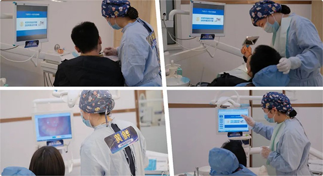 除了對(duì)潔治流程的熟練操作,簡(jiǎn)單明了的口腔保健宣教也是本次比賽考核的重要指標(biāo)。在術(shù)后的口腔保健宣教環(huán)節(jié),通過(guò)潔牙師對(duì)顧客口內(nèi)的內(nèi)窺鏡拍照和菌斑檢測(cè)的分析,能很好地反應(yīng)出潔牙師對(duì)顧客口腔情況做針對(duì)性指導(dǎo)的能力。最終,參賽的選手們憑借豐富的潔牙經(jīng)驗(yàn)和臨場(chǎng)反應(yīng),均順利完成潔治項(xiàng)目及比賽考核。