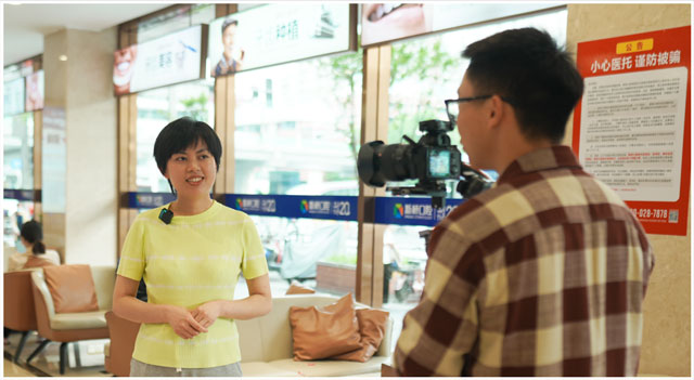 一位趁五一假期帶著孩子來看牙的寶媽告訴記者:“我剛進(jìn)門,就被大廳的攝影展吸引了。每一張照片都很幸福、溫馨,感覺非常真實(shí)。看著這些照片,我也很想有帶著孩子和家人去照的沖動(dòng)。”正在一旁擔(dān)綱攝影展“講解員”的龔晴聽到后,立馬換裝拿裝備,貼心地為寶媽一家拍攝了一組新的《微笑映像》。
