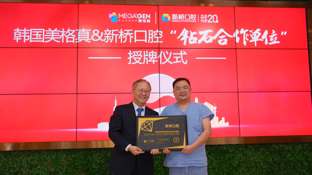 2024年5月13日,新橋口腔獲亞洲主流種植體品牌韓國(guó)美格真(MEGAGEN)種植體授牌“鉆石合作單位”,以此表彰新橋口腔在該種植體的臨床應(yīng)用領(lǐng)域所做出的卓越貢獻(xiàn),也標(biāo)志著雙方將在種植技術(shù)學(xué)術(shù)板塊、產(chǎn)品品質(zhì)優(yōu)化板塊開(kāi)展更高水平、更具深度的戰(zhàn)略合作。