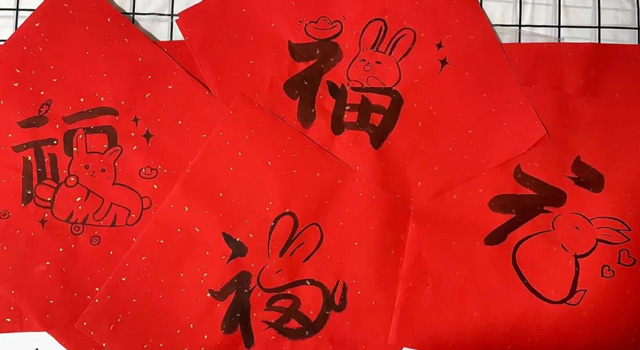有一年春節(jié),蔣越給院區(qū)的同事每人量身創(chuàng)作了一幅畫,每一幅上都有不同的“福”字和新年祝語。兒時的愛好,讓她的生活多姿多彩。