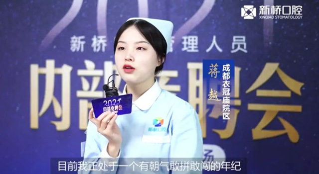 2021年底,蔣越參加了新橋口腔管理人員內(nèi)部競聘會,成功競聘護(hù)士長一職,成為新橋口腔的儲備護(hù)士長。