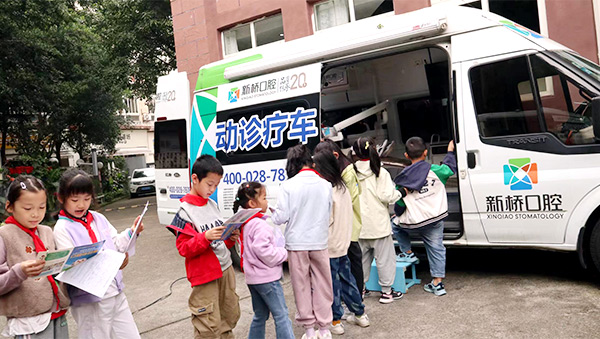 新橋口腔診療車開進成都市花園(國際)小學,關(guān)注兒童口腔,守護童真笑顏?!?/p>