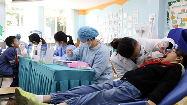 作為項目定點單位,新橋口腔組建的以兒童早期矯正專科醫(yī)生為首的專項醫(yī)療小組,將口腔診療車開進校園,為校內(nèi)三年級學生開展口腔健康檢查和窩溝封閉防齲治療。
