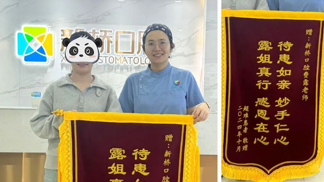 在接受正畸治療的三年多時(shí)間里,徐女士和費(fèi)醫(yī)生處成了朋友,“費(fèi)醫(yī)生”變成了“露姐”,這份情誼也被定格在了錦旗上:“待患如親”、“露姐真行”!直白而俏皮的文字幫徐女士說(shuō)出了內(nèi)心的感激之情。