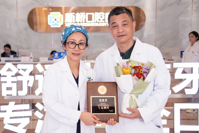 近日,新橋口腔業(yè)務(wù)院長(zhǎng)劉姍向四位專家授予了任命書(shū)。他們分別是:原華西醫(yī)科大學(xué)衛(wèi)生部口腔種植科技中心副主任劉果生教授,原四川大學(xué)華西口腔醫(yī)院種植科專家李華,原四川大學(xué)華西口腔醫(yī)院放射科主任王虎教授,原四川大學(xué)華西口腔醫(yī)院修復(fù)科王小容副教授。