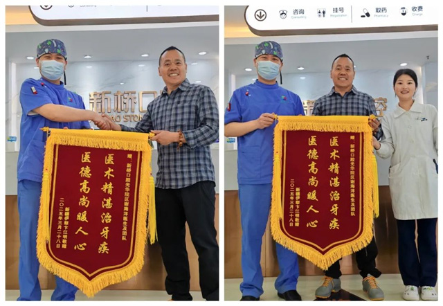 近日,來(lái)自新疆伊犁的卞先生,將一面寫(xiě)有“醫(yī)術(shù)精湛治牙疾 醫(yī)德高尚暖人心”的錦旗,親手送到了新橋口腔成都光華院區(qū)種植專(zhuān)科副主任醫(yī)師謝海洋手中,一句“值得”道出了一段雙向奔赴的醫(yī)患情……