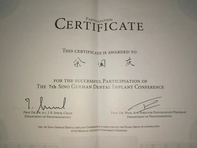 從醫(yī)二十余載,余國慶在工作之余從未停止過學(xué)習(xí)的步伐,他表示,口腔種植修復(fù)是個(gè)發(fā)展很快的領(lǐng)域,唯有不斷追求進(jìn)步才能為患者提供更優(yōu)質(zhì)的醫(yī)療服務(wù)。因此,無論多么忙碌,他都會(huì)抽出時(shí)間參與國內(nèi)外的專業(yè)論壇,積極參加培訓(xùn),與同行交流學(xué)習(xí)。