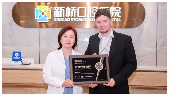2025年4月25日,德國BEGO種植系統(tǒng)亞太區(qū)總監(jiān)Tobias Speicher一行蒞臨新橋口腔成都衣冠廟院區(qū),實地調(diào)研其作為“德國BEGO舒適化種植牙臨床示范中心”的臨床診療、設(shè)施環(huán)境及服務(wù)質(zhì)量,并授予新橋口腔“鉑金合作伙伴”獎牌,標(biāo)志著雙方合作邁向新臺階。