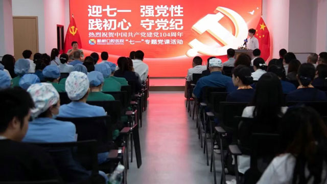 為慶祝中國共產(chǎn)黨成立104周年,深入學(xué)習(xí)貫徹黨的二十大精神,進(jìn)一步強(qiáng)化黨員干部黨性修養(yǎng)、厚植員工愛國愛黨情懷,6月10日,新橋口腔“迎七一 強(qiáng)黨性 踐初心 守黨紀(jì)”專題黨課活動(dòng)在新橋口腔成都總院(成都人南新橋口腔醫(yī)院)成功舉辦。