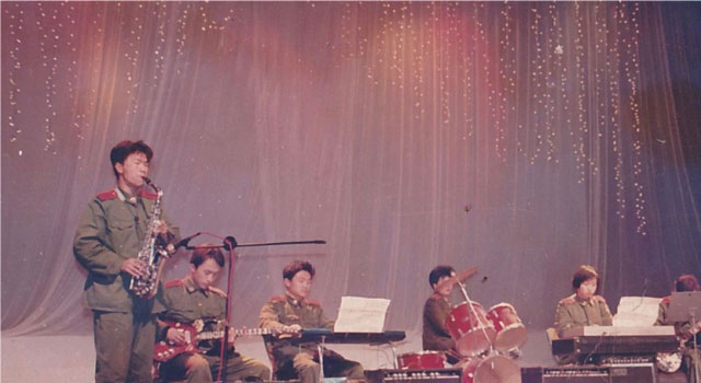 參加校園音樂節(jié)演出(左二為李峰)