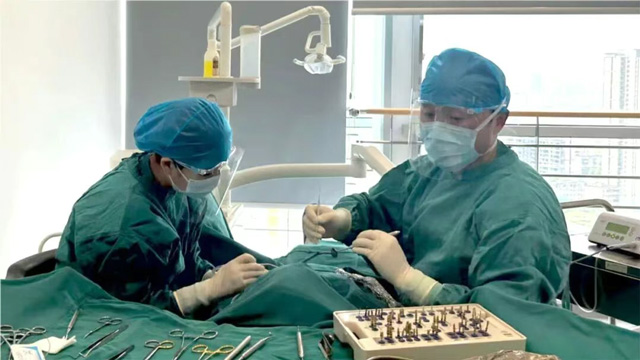 比如頭頸腫瘤患者,在切除腫瘤的同時(shí),李峰會(huì)同期完成頜面部患處的截骨手術(shù)?;颊叩南骂M骨或牙槽骨被切掉后,牙也隨之缺失,后期還需要接受牙齒的修復(fù)治療。