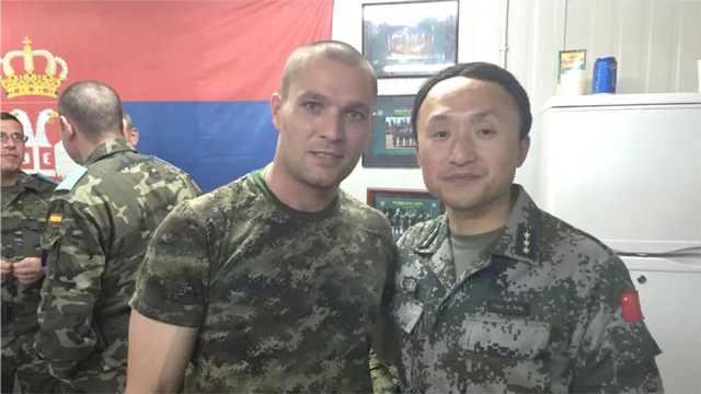 李峰與救治的塞爾維亞士兵合影