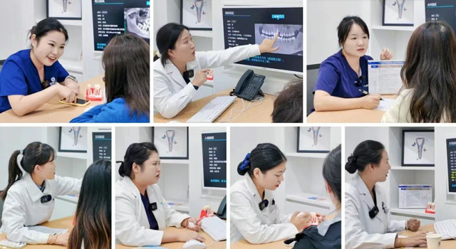 比賽現(xiàn)場,“模擬顧客”們精心準(zhǔn)備,拋出了一個又一個“難題”:從咨詢種植牙的老年顧客對價格的疑問,到首次看牙、對流程迷茫且毫無了解的剛畢業(yè)大學(xué)生;從對治療時間有嚴(yán)格要求的上班族,到對美學(xué)效果抱有超高期望的女士……