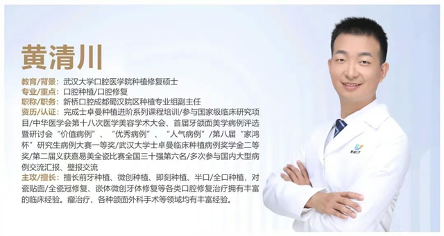 新橋口腔成都蜀漢院區(qū)種植專業(yè)組副主任/口腔修復(fù)學(xué)碩士黃清川友情提示:種植牙術(shù)后的恢復(fù)期,是確保手術(shù)成功和種植牙長期使用的關(guān)鍵時期。在此期間,患者應(yīng)嚴(yán)格遵守醫(yī)生的飲食建議,并保持良好的口腔衛(wèi)生習(xí)慣,定期復(fù)診檢查,以確保種植牙的穩(wěn)定性和使用效果。