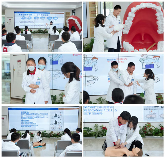 活動最后,在急救知識教學(xué)與實操演練環(huán)節(jié),新橋口腔工作人員用通俗易懂的語言,系統(tǒng)講解了牙外傷處理、海姆立克急救法及心肺復(fù)蘇(CPR)三大急救技能的核心要領(lǐng),并通過標(biāo)準(zhǔn)化演示,為同學(xué)們進(jìn)行了分步驟、慢動作的實操解析。演示結(jié)束后,同學(xué)們在工作人員的指導(dǎo)下紛紛上臺進(jìn)行實踐操作,鞏固所學(xué),將理論知識轉(zhuǎn)化為寶貴的應(yīng)急處理能力。